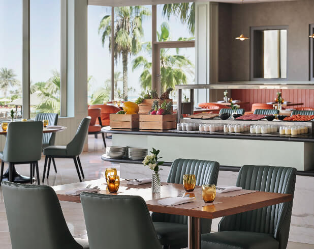 JA Beach Hotel at JA The Resort is our beloved flagship hotel,offering families and leisure seekers a laid-back resort lifestyle for over four decades. Each of its 235 rooms and suites has a private balcony or terrace overlooking the Arabian Gulf, Palm Jebel Ali, our private marina, or the lush hotel gardens. And there’s a wealth of activities for younger guests, including a kids club that has a certified hotel creche in Dubai, an splash park, dedicated family pools, and all kinds of water sports. And everyone will love that our pristine private beach is just steps away. All in all, it’s one of the most well-served and popular all-inclusive beach hotels in Dubai.